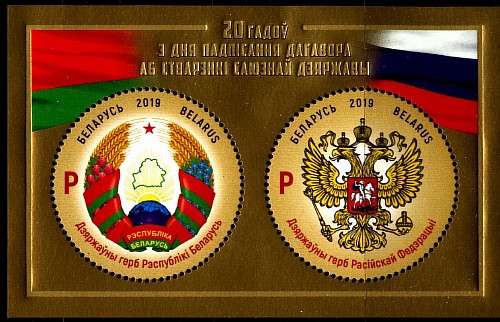 Беларусь 2019 год. 20 лет со дня подписания договора о создании Союзного государства. Блок (BY1060)