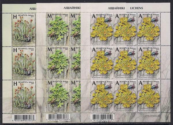 Беларусь 2019 год. Лишайники. 3 малых листа (BY1027)