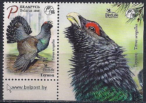 Беларусь 2020 год. Птица года. Глухарь (BY1068к). 1 марка + купон