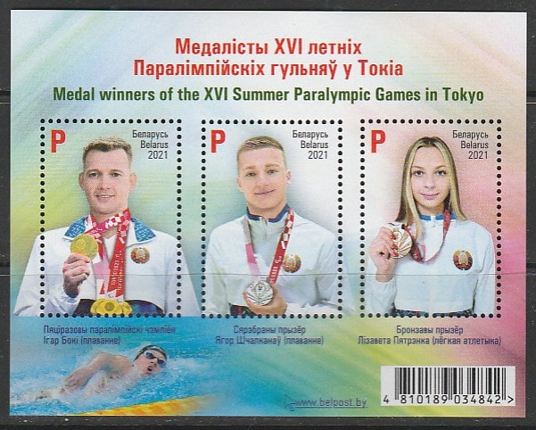 Беларусь 2021 год. Медалисты XVI Паралимпийских игр в Токио, блок (042.1169)