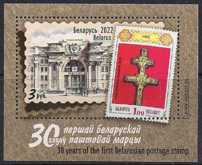 Беларусь 2022 год. 30 лет первой белорусской почтовой марке (042.1182). Блок с/з