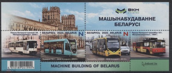 Беларусь 2025 год. Машиностроение Беларуси. Трамвай Т811.Троллейбус 43300D (BY1398). Блок