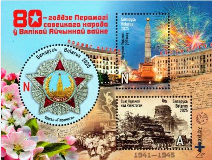 Беларусь 2025 год. Совместный выпуск Беларуси и России. 80-летие Победы советского народа в Великой Отечественной войне (BY1385). Блок