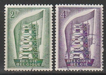Бельгия 1956 год. "Europa". Европейский флаг за трубчатым стальным каркасом, 2 марки (гашёные) (18/0,6)