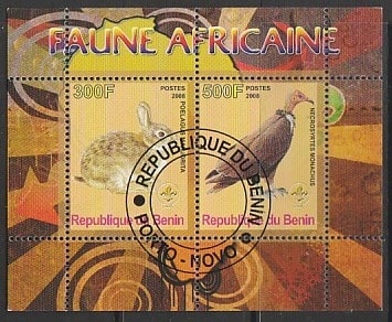 Бенин 2008 год. Африканская фауна, блок (гашёный)