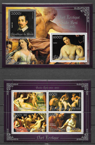 Бенин 2013 г. Гвидо Рени, эротическая живопись, блок и малый лист