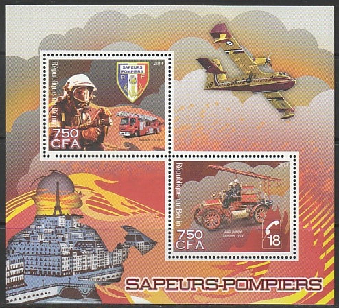 Бенин 2014 год. Пожарная служба, малый лист. Сувенирный выпуск.