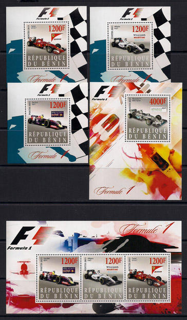 Бенин 2015 г. Формула 1, 3 люксблока, блок и лист
