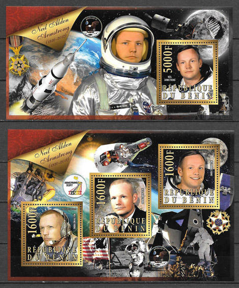 Бенин 2015 г. Космос. Н.А. Армстронг, Аполлон-2, блок и малый лист