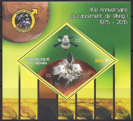 Бенин 2015 год. 40 лет космических исследований Луны. Блок Сувенирный выпуск