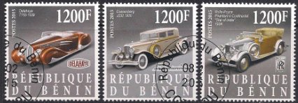 Бенин 2015 год. Коллекционные автомобили. 3 гашеные марки