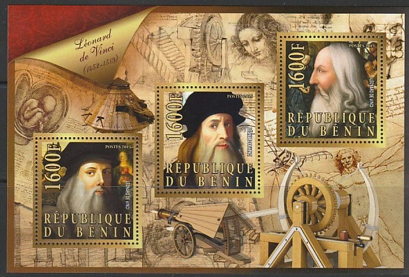 Бенин 2015 год. Леонардо да Винчи, малый лист.