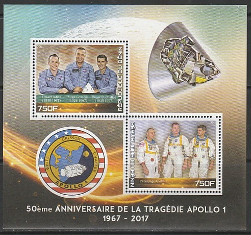 Бенин 2017 год. Астронавты погибшего экипажа "Аполлона-1", малый лист.