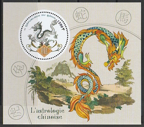 Бенин 2018 год. Китайская астрология. Год дракона, блок. Сувенирный выпуск.