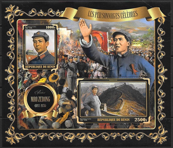 Бенин 2018 год. Мао Цзэдун, китайский революционер, малый лист