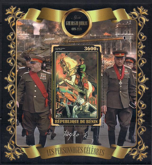 Бенин 2018 год. Маршал СССР Г.К. Жуков. 1 блок Сувенирный выпуск