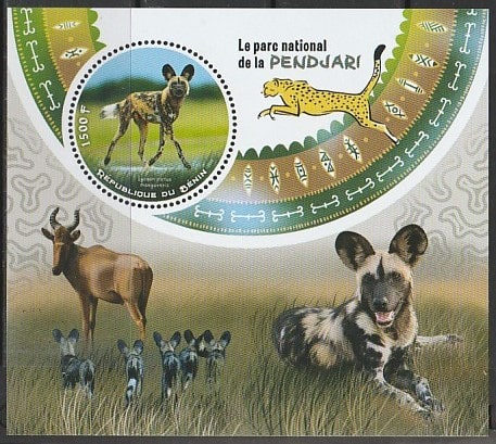 Бенин 2018 год. Национальный парк Пенджари. Гиеновидная собака, блок. Сувенирный выпуск.