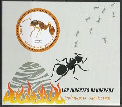 Бенин 2018 год. Опасные насекомые. Огненные муравьи, блок.