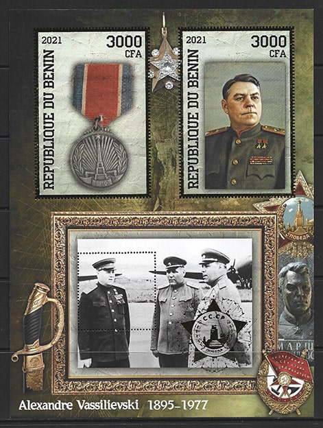 Бенин 2021 год. Александр Михайлович Василевский, малый лист, тиснение золотом