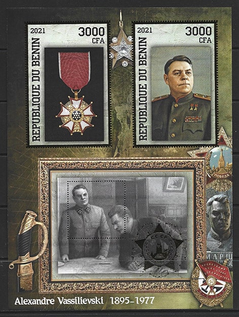 Бенин 2021 год. Александр Михайлович Василевский, малый лист, тиснение золотом