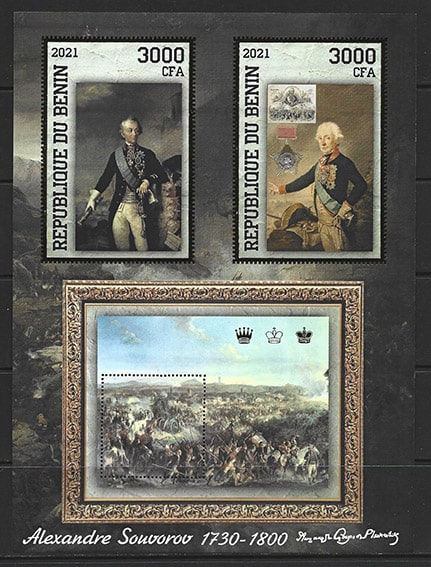 Бенин 2021 год. Александр Суворов, малый лист, тиснение золотом