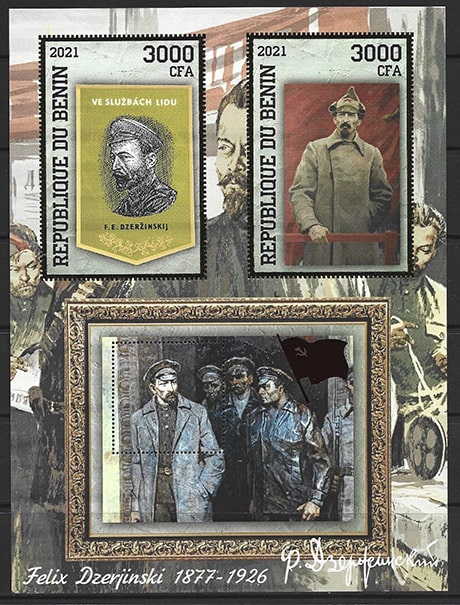 Бенин 2021 год. Дзержинский, тиснение золотом, малый лист