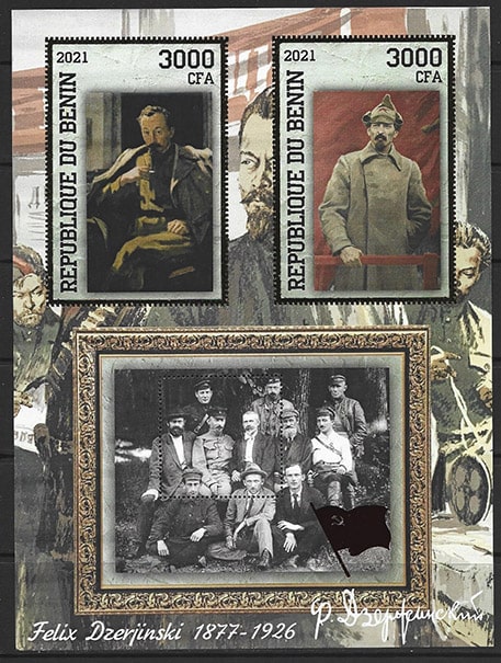 Бенин 2021 год. Дзержинский, тиснение золотом, малый лист