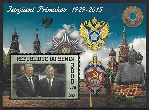 Бенин 2021 год. Евгений Примаков и Сергей Иванов. Блок, тиснение золотом