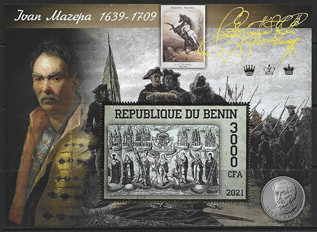 Бенин 2021 год. Иван Степанович Мазепа, блок, тиснение золотом
