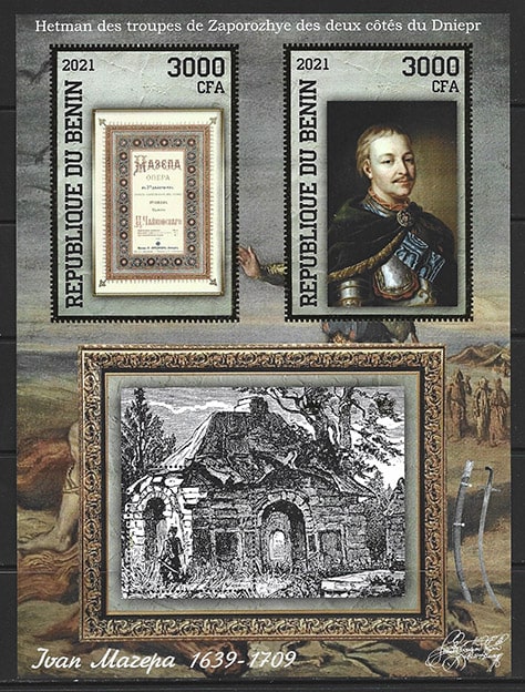Бенин 2021 год. Иван Степанович Мазепа, малый лист, тиснение золотом