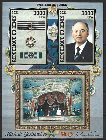 Бенин 2021 год. Михаил Горбачев. Малый лист, тиснение золотом