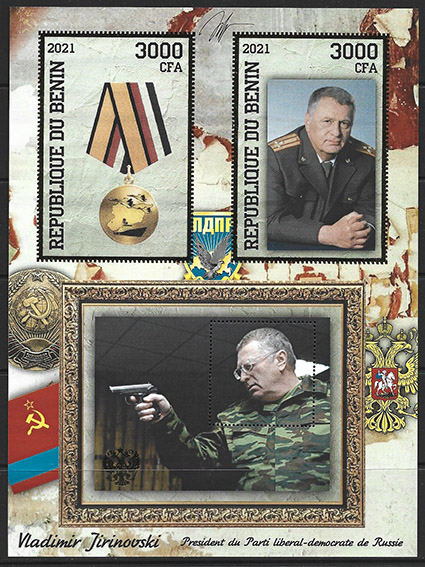 Бенин 2021 год. Владимир Жириновский, малый лист, тиснение золотом