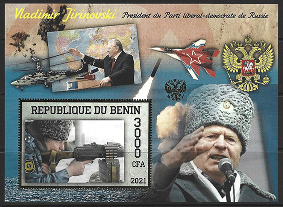 Бенин 2021 год. Владимир Жириновский, стрельба, блок, тиснение золотом