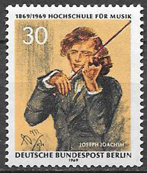 Берлин 1969 год. 100-летие музыкального колледжа в Берлине. Скрипач Иоахим Йозеф, 1 марка