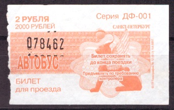 Билет для проезда в автобусе в г. Санкт-Петербург 078462
