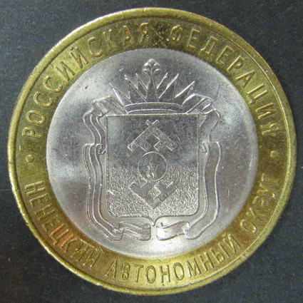 Биметалл 10 руб. 2010, Ненецкий автономный округ, СПМД, 1 монета из обращения