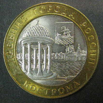 Биметалл 10 рублей 2002, СПМД, Кострома, 1 монета из обращения