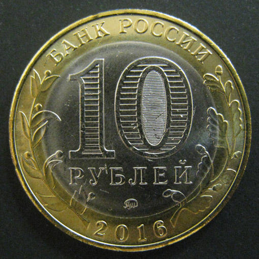 Биметалл 10 рублей 2016, ММД, Великие Луки, 1 монета из мешка