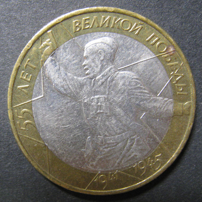 Биметалл. 10 рублей. 55 лет Великой Победы. 2000 год ММД