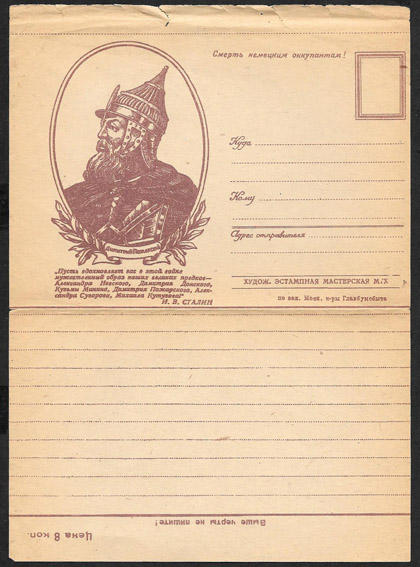Бланк, открытое письмо. Смерть немецким оккупантам! Дмитрий Пожарский