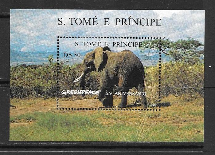 Блок Сан-Томе и Принсипи. 1996 год. Слоны. Greenpeace