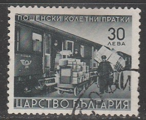 Болгария 1942 год. Почтовый транспорт и инфраструктура. Почтовый вагон, ном. 30L, 1 посылочная марка из серии (гашёная)