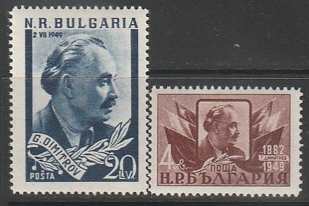 Болгария 1949 год. Смерть Георгия Димитрова, 2 марки. (1,8/0,8)
