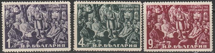 Болгария 1951 год. 60 лет I Съезду болгарской социал-демократической партии. 3 марки (наклейка)