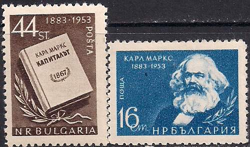 Болгария 1953 год. 70 лет со дня смерти Карла Маркса. 2 марки с наклейкой