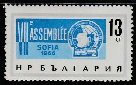 Болгария 1966 год. Международная Федерация демократической молодёжи, 1 марка (наклейка)
