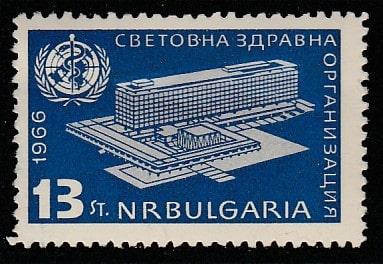 Болгария 1966 год. Открытие нового здания ВОЗ в Женеве, 1 марка (наклейка)