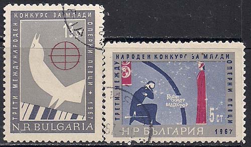 Болгария 1967 год. 3-й Международный конкурс молодых оперных певцов. 2 гашёные марки