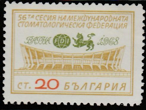 Болгария 1968 год. Международный конгресс стоматологов в Варне. Здание конгресса и эмблема, 1 марка