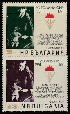Болгария 1971 год. 20 лет Ассоциации бойцов Сопротивления. Георгий Димитров, 2 марки.